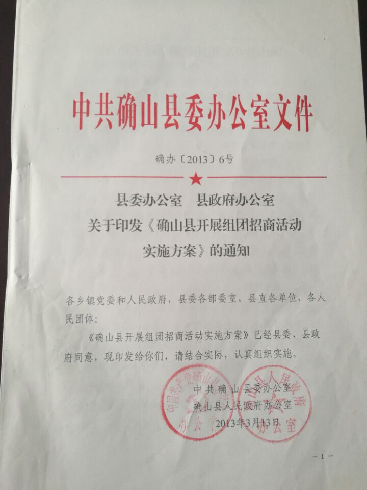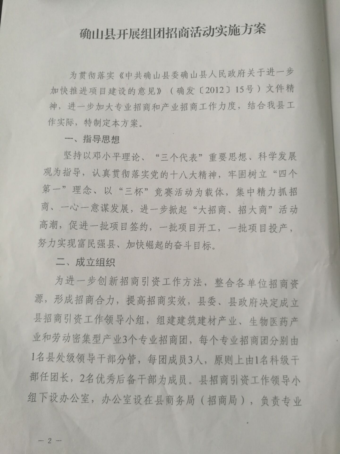 县委办公室 县政府办公室关于印发《确山县开展组团招商活动实施方案》的通知