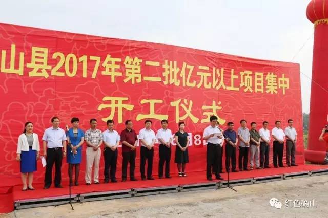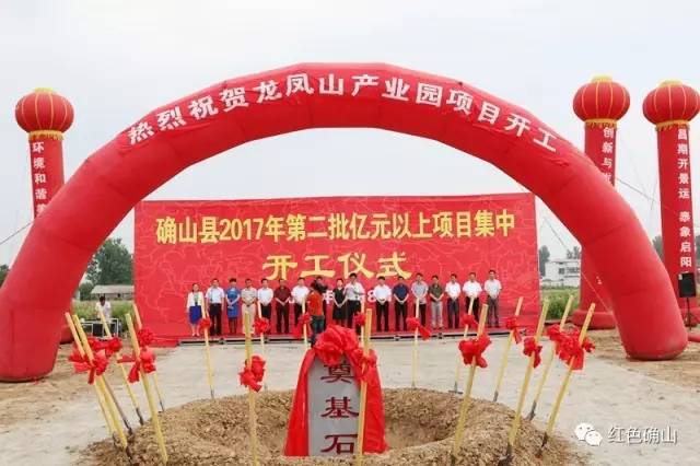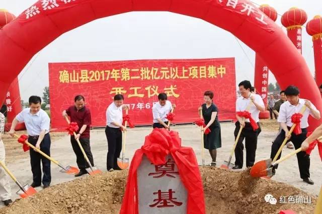 6月8日上午,确山县在县产业集聚区龙凤山产业园举行2017年度第二批亿元以上重点项目集中开工仪式。市人大常委会主任张宪中,市人大常委会副主任、市总工会主席张丽彩及路耕、彭广峰、聂庆忠、陶宏启等确山县四大班子领导,各镇(街道)、县直部门负责人及开工企业代表参加开工仪式。