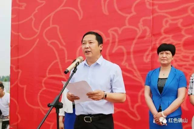 县委副书记、县长彭广峰致辞。他指出,今天集中开工的3个项目,总投资22.3亿元,年内计划投资4.5亿元。这些项目是确山县招商引资理念创新、方式转变的最新成果。今年以来,确山县面对土地、环保等要素制约日益趋紧的局面,面对脱贫攻坚、改革稳定等各项任务异常繁重的严峻形势,狠抓项目建设不动摇,扭住招商引资不放松,坚持把推进项目建设与打好“三大攻坚战”有机结合,把招商引资与四项重点工作、“50工程”共同推进,全县项目建设、招商引资继续保持良好势头。至目前,确山县已在郑州、永康、合肥等地开展定向招商活动9次,签约亿元以上项目12个,总投资73亿元;在谈亿元以上项目16个,计划总投资64亿元。