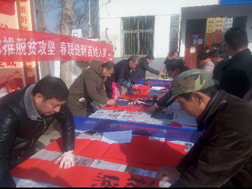 为使贫困村广大群众过一个欢乐祥和、热闹喜庆的春节,弘扬中国传统书法艺术,2月4日至5日,由确山县文化广电新闻出版局主办,确山县文化馆、确山县图书馆承办的“文化助推脱贫攻坚,春联送到百姓人家”义写春联活动,分别走进该局结对帮扶贫困村:瓦岗镇林庄村和留庄镇代庄村,受到了两个村广大群众的欢迎和好评。